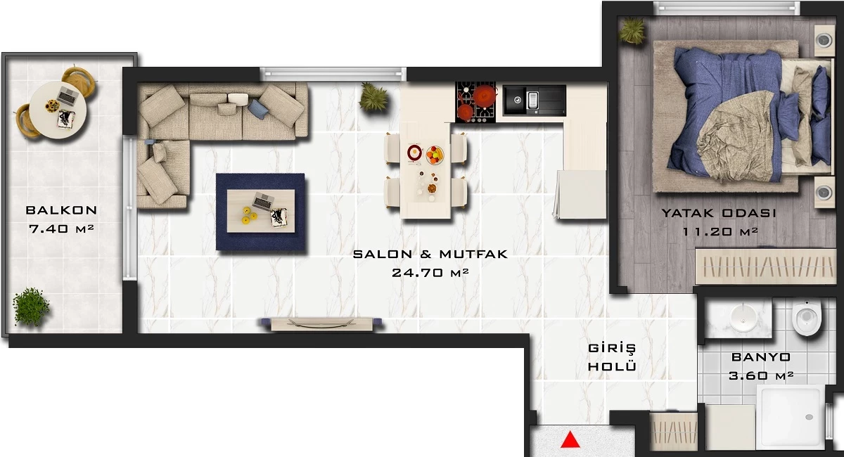 Продається квартира в Аланья. Площа, м: 59, кімнат: 1+1, ціна: 130 000 євро. (ID 562)