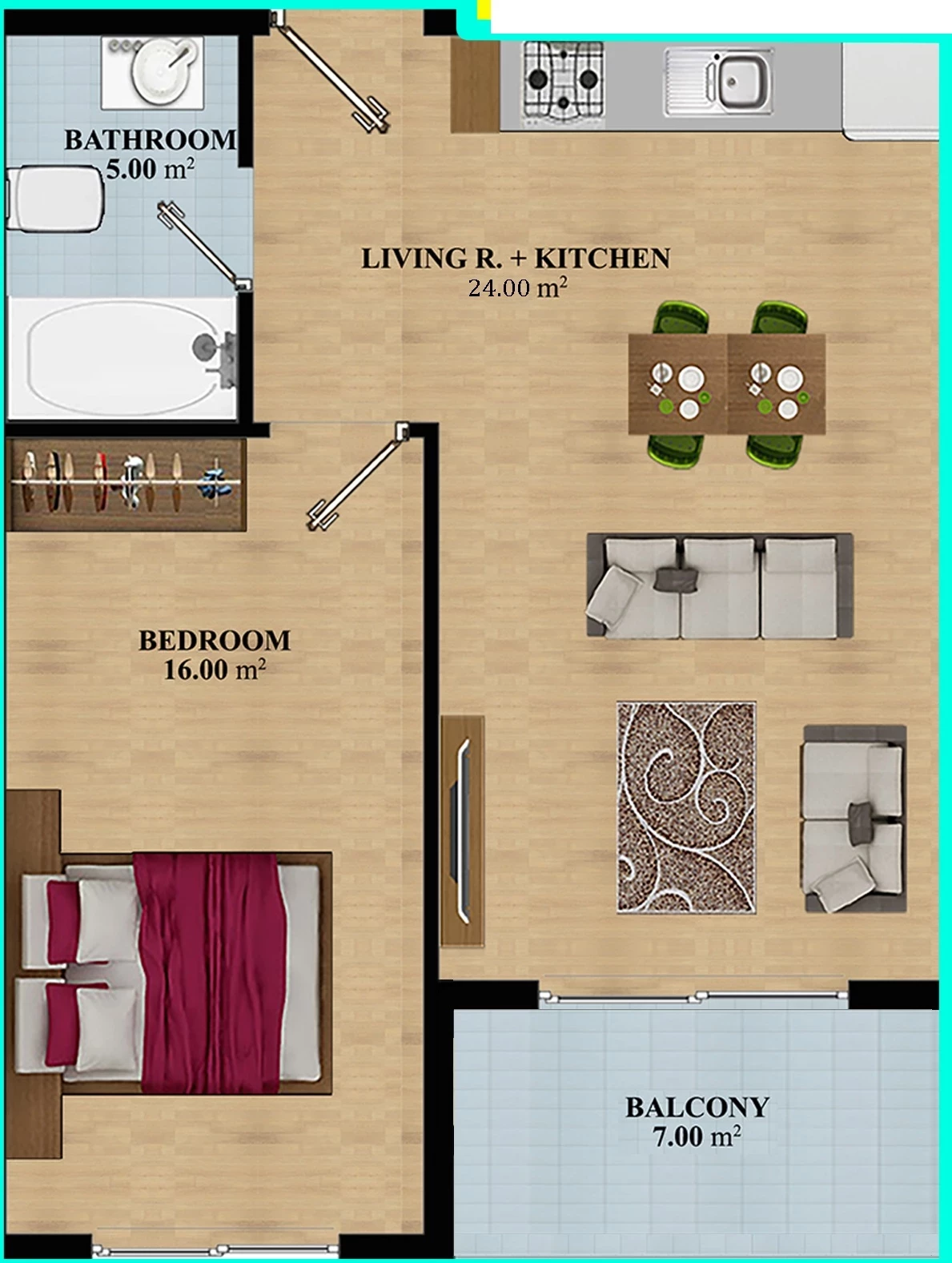 Продається квартира в Аланья. Площа, м: 63, кімнат: 1+1, ціна: 100 500 євро. (ID 573)