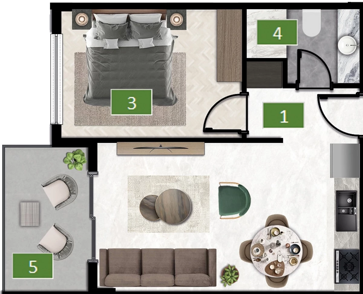 Продається квартира в Аланья. Площа, м: 50, кімнат: 1+1, ціна: 195 000 євро. (ID 576)
