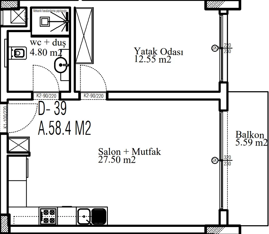 Продається квартира в Анталія. Площа, м: 58, кімнат: 1+1, ціна: 103 000 євро. (ID 741)