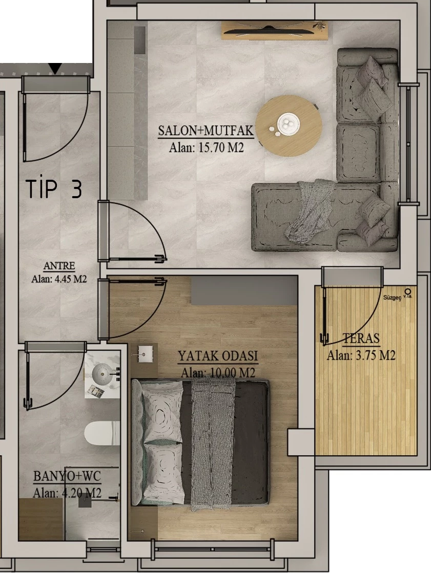 Продається квартира в Серік. Площа, м: 48, кімнат: 1+1, ціна: 105 000 євро. (ID 104)