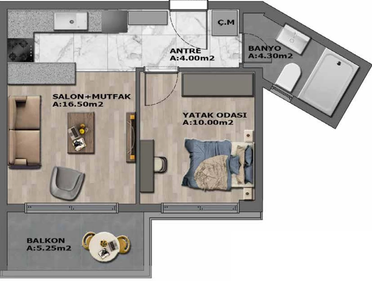 Продається квартира в Аксу. Площа, м: 54, кімнат: 1+1, ціна: 310 000 євро. (ID 382)