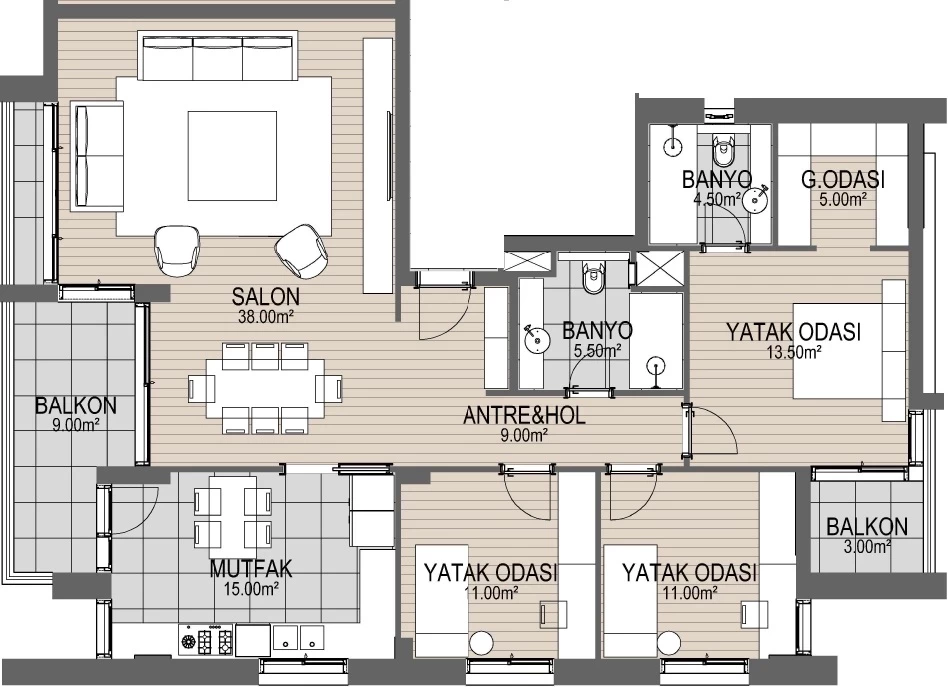 Продається квартира в Коньяалти. Площа, м: 182, кімнат: 3+1, ціна: 770 000 євро. (ID 390)