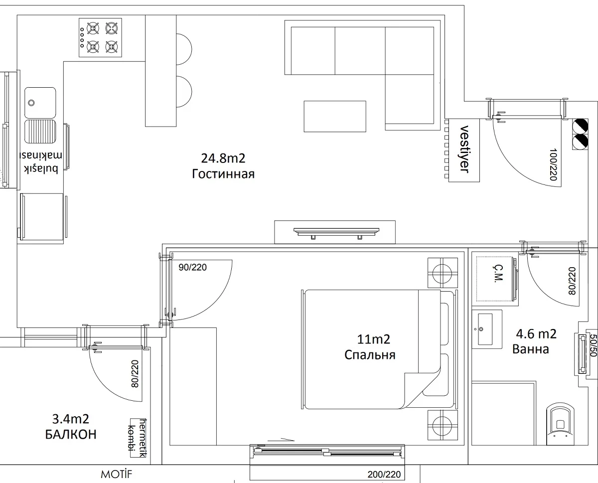 Продається квартира в Кепез. Площа, м: 44, кімнат: 1+1, ціна: 155 000 євро. (ID 408)