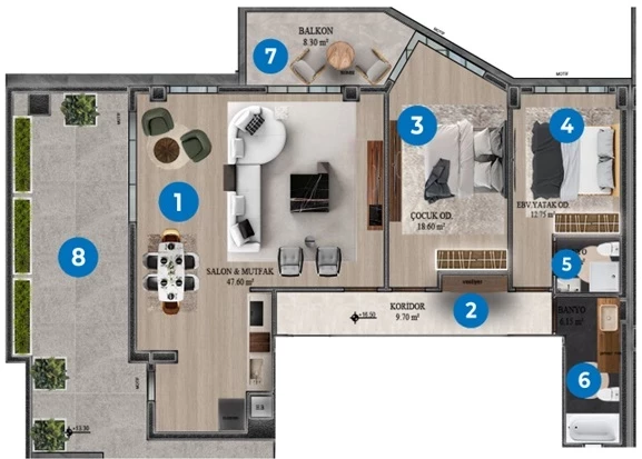 Продається квартира в Кепез. Площа, м: 127, кімнат: 2+1, ціна: 768 000 євро. (ID 425)