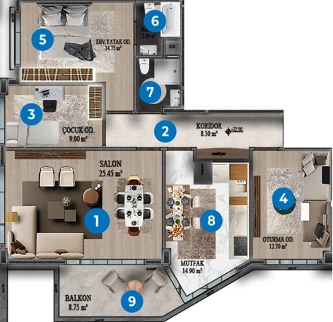 Продається квартира в Кепез. Площа, м: 135, кімнат: 3+1, ціна: 768 000 євро. (ID 425)