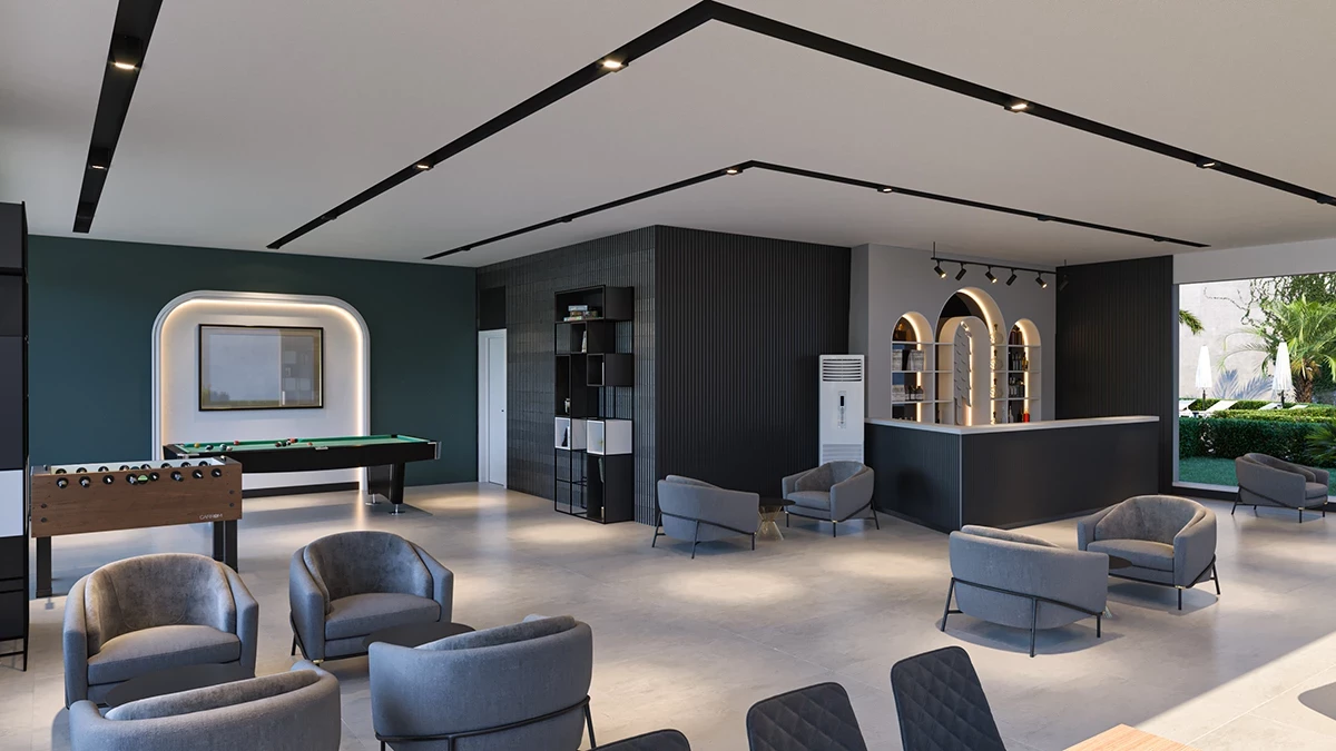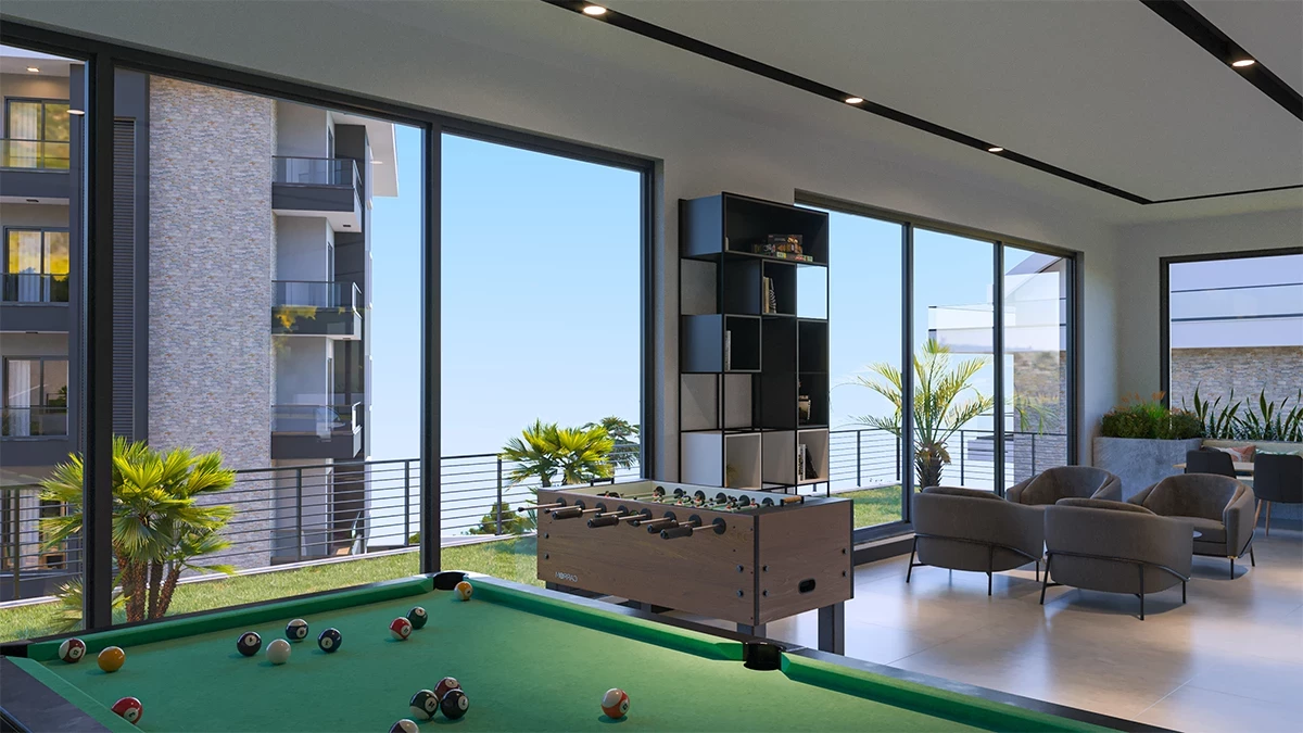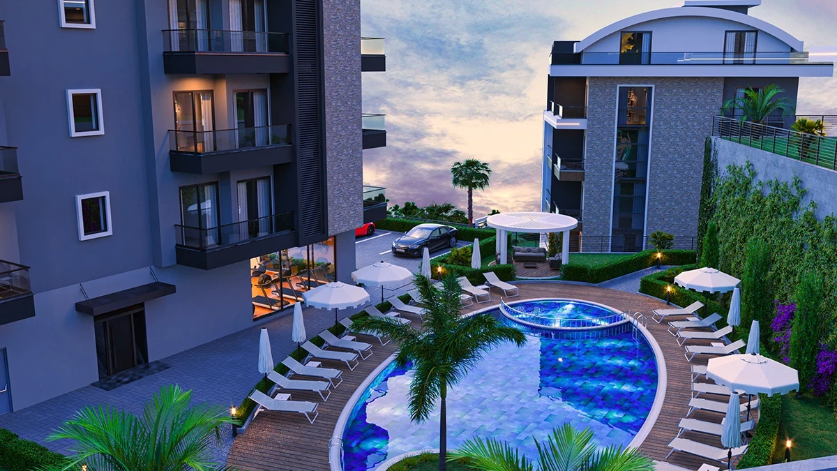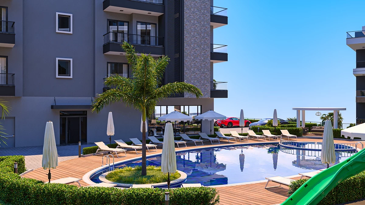 Відкритий басейн, Безкоштовний шатл до моря, Фітнес-зал, Фінська сауна, Зона для барбекю, Дитячий майданчик, Озеленена територія, Відкрите паркування, Підземне паркування, Генератор, Цілодобове відеоспостереження, Керуюча компанія (перебуває на території комплексу).