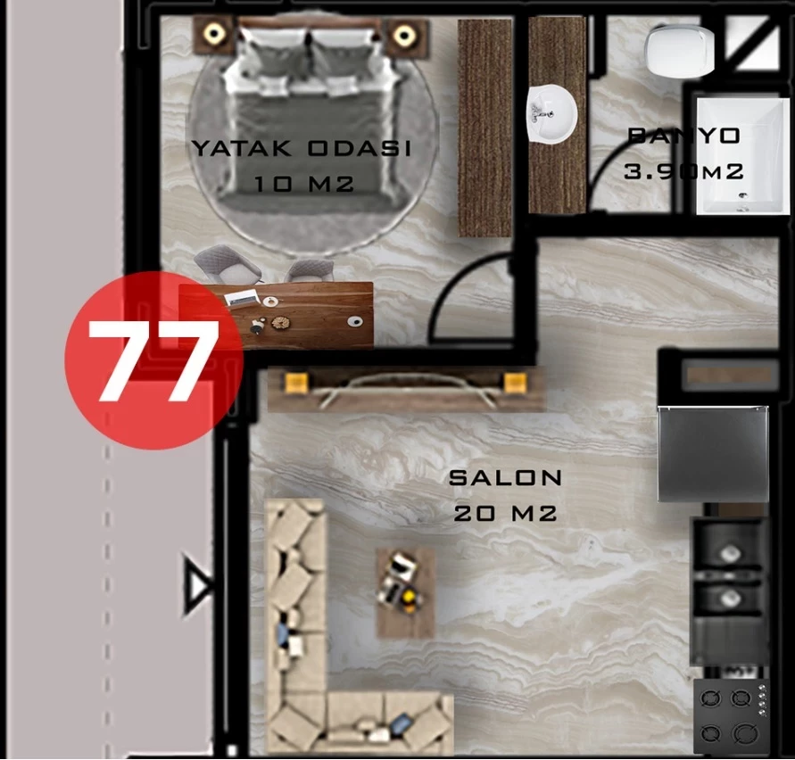 Продається квартира в Аланья. Площа, м: 60, кімнат: ...