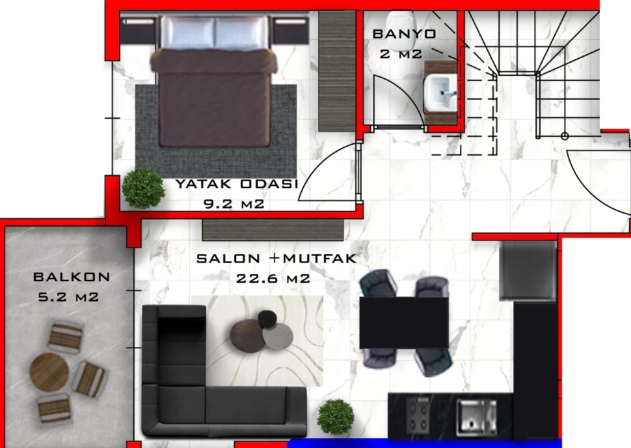ДВОРІВНЕВА КВАРТИРА 3 + 1 З БАСЕЙНОМ В ГЮЗЕЛЬОБІ