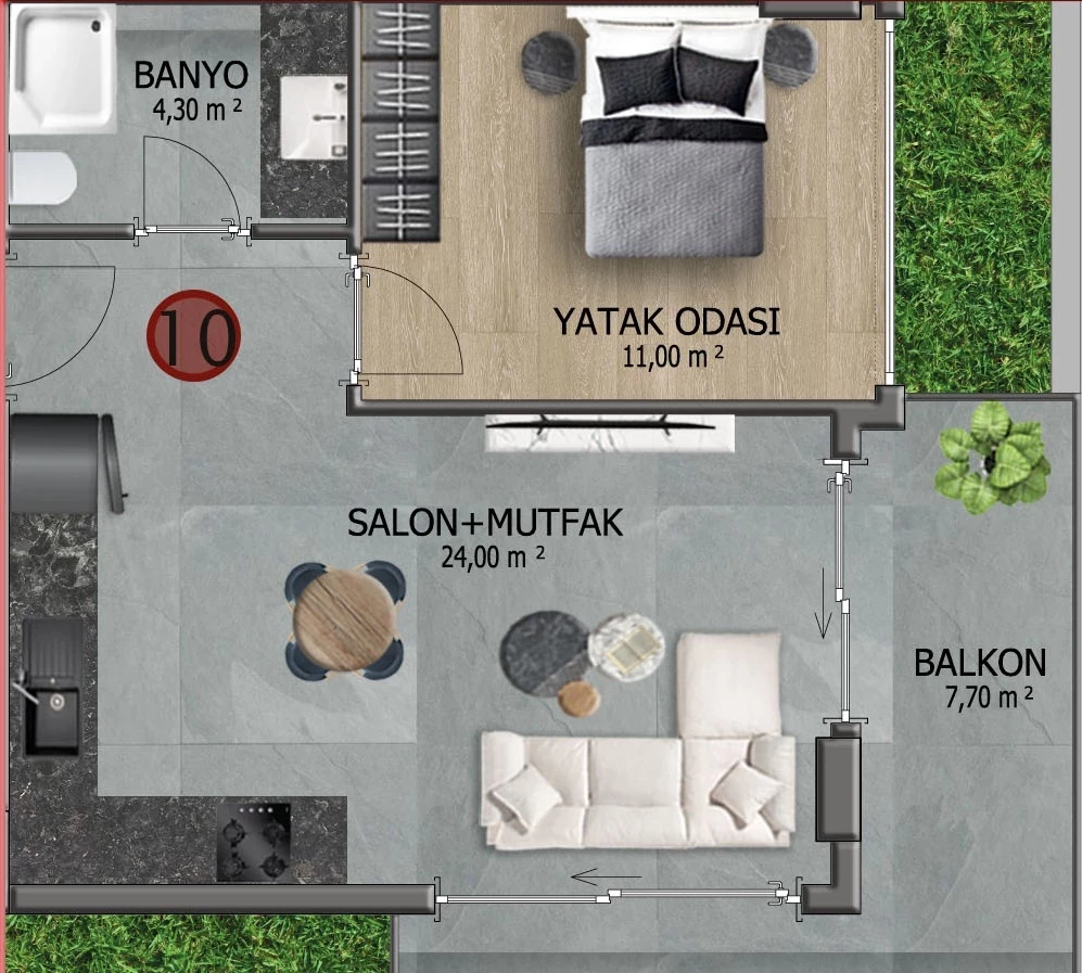 Продається квартира в Аланья. Площа, м: 47, кімнат: 1+1, ціна: 222 000 євро. (ID 463)