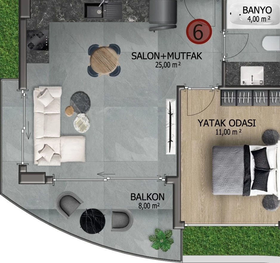 Продається квартира в Аланья. Площа, м: 51, кімнат: 1+1, ціна: 230 000 євро. (ID 463)