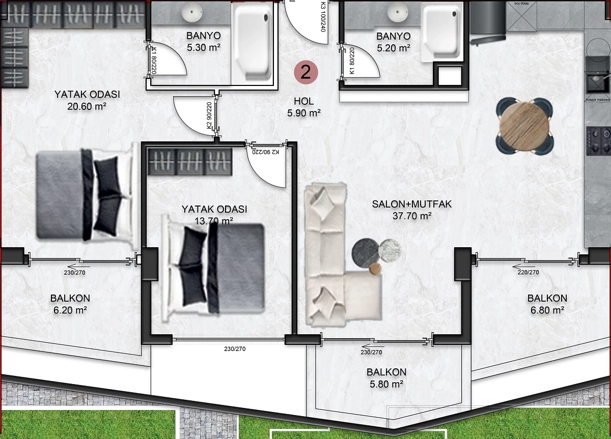 Продається квартира в Аланья. Площа, м: 107, кімнат: 2+1, ціна: 210 000 євро. (ID 465)