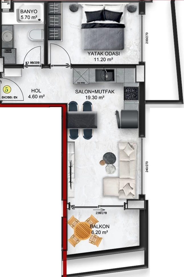 Продається квартира в Аланья. Площа, м: 47, кімнат: 1+1, ціна: 120 000 євро. (ID 465)