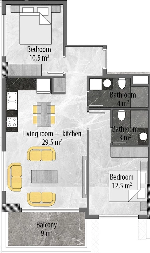 Продається квартира в Аланья. Площа, м: 68, кімнат: 2+1, ціна: 195 000 євро. (ID 469)