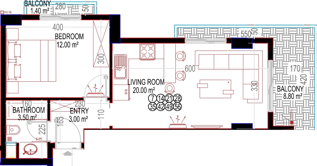 Alanya shahrida kvartira sotiladi. Maydoni, m: 56, x...