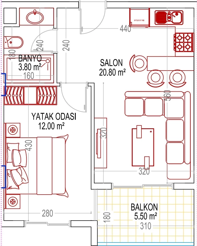 Alanya shahrida kvartira sotiladi. Maydoni, m: 53, xonalar: 1+1, narxi: 130 000 evro. (ID 473)
