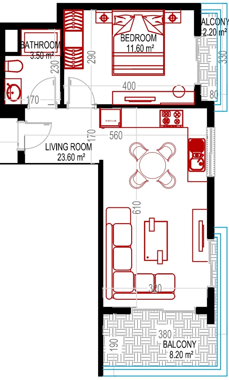 Kuzdere Mah. Amerika Oshxona 2 + 1 Xona