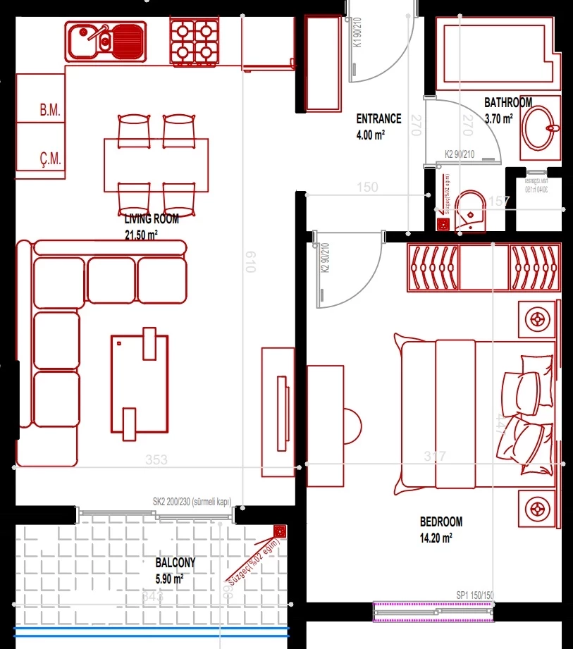 Kuzdere Mah. 2 + 1 kvartira alohida oshxona bilan so...