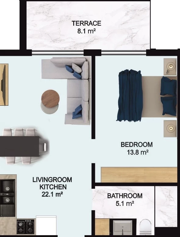 Alanya shahrida kvartira sotiladi. Maydoni, m: 68, xonalar: 1+1, narxi: 285 000 evro. (ID 493)