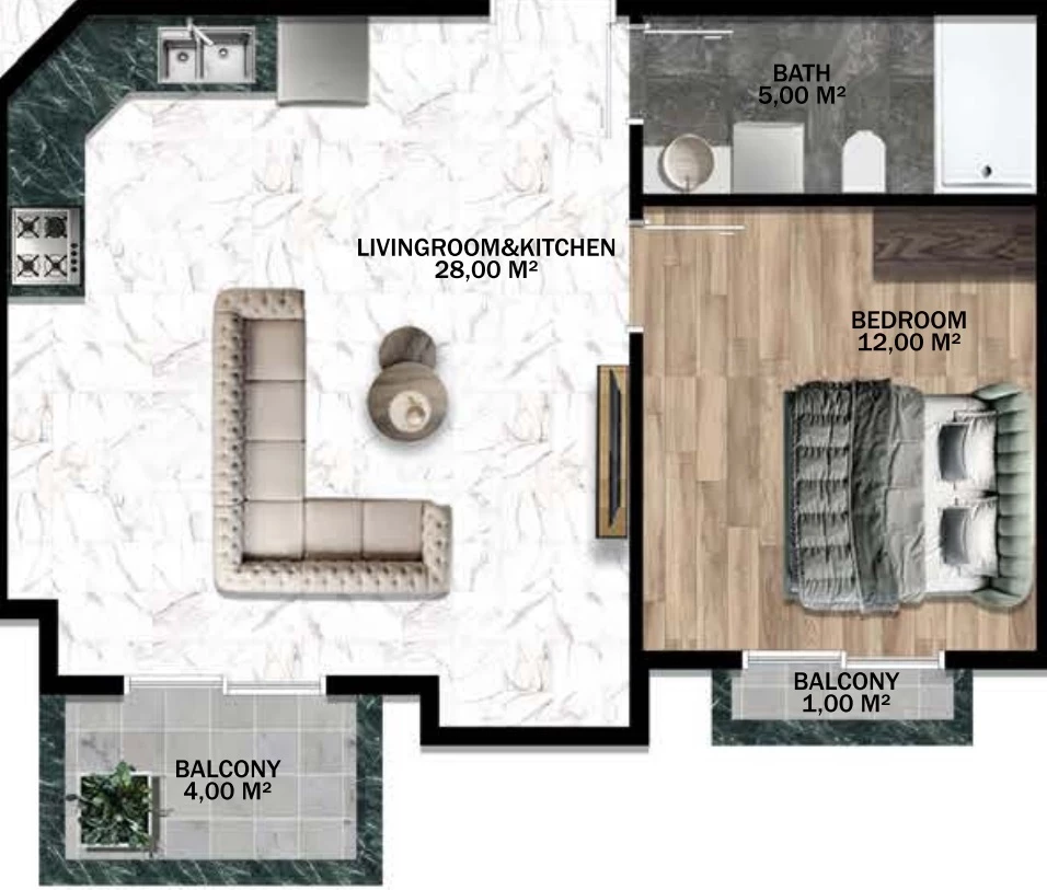 Alanya shahrida kvartira sotiladi. Maydoni, m: 50, xonalar: 1+1, narxi: 225 000 evro. (ID 494)