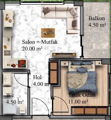 Alanya shahrida kvartira sotiladi. Maydoni, m: 90, xonalar: 1+1, narxi: 450 000 evro. (ID 496)