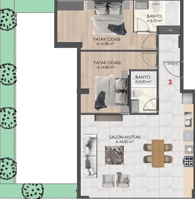 Alanya shahrida kvartira sotiladi. Maydoni, m: 183, xonalar: 2+1, narxi: 319 500 evro. (ID 505)