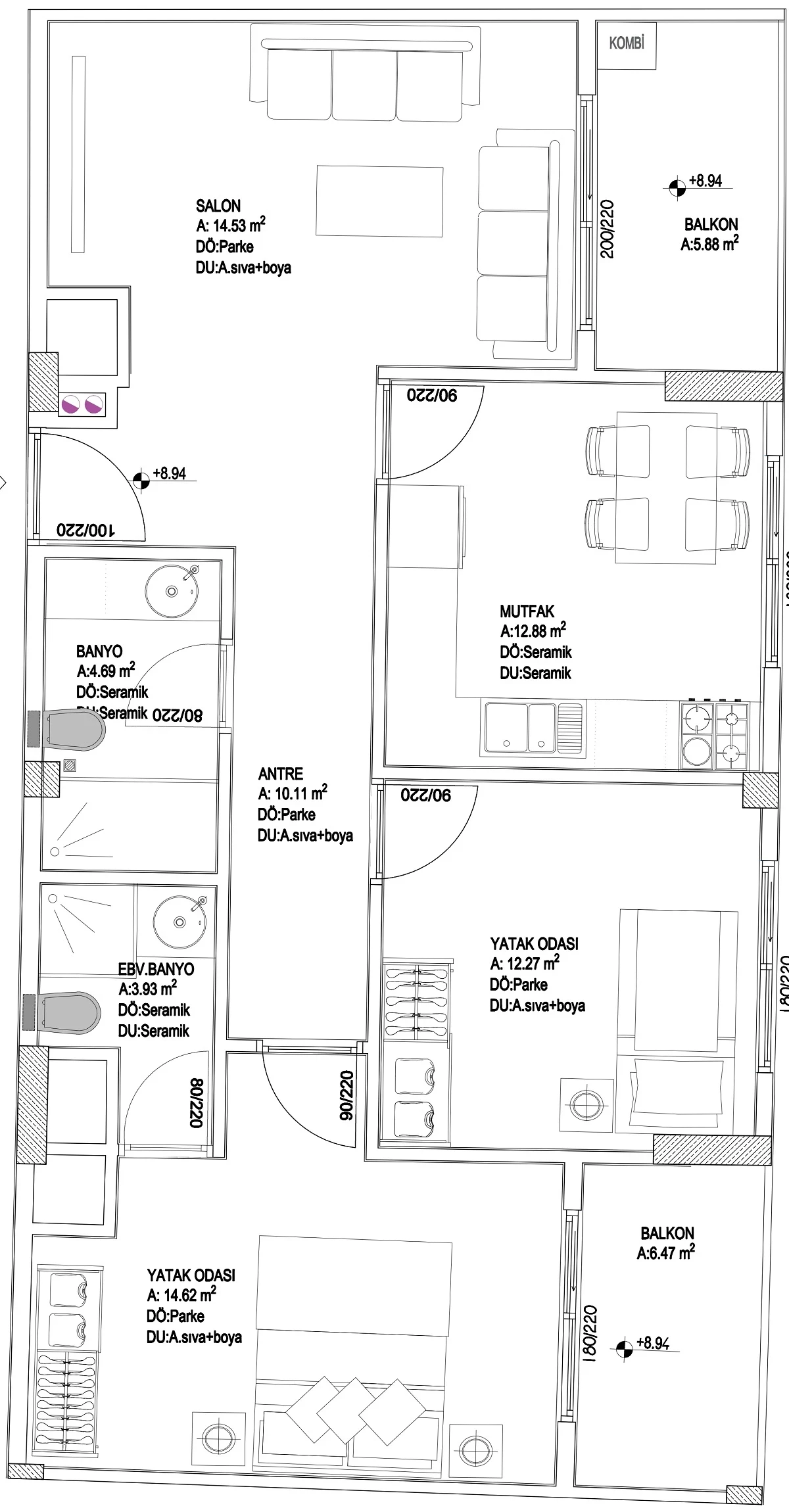 Aksu shahrida kvartira sotiladi. Maydoni, m: 85, xonalar: 2+1, narxi: 258 450 evro. (ID 48)