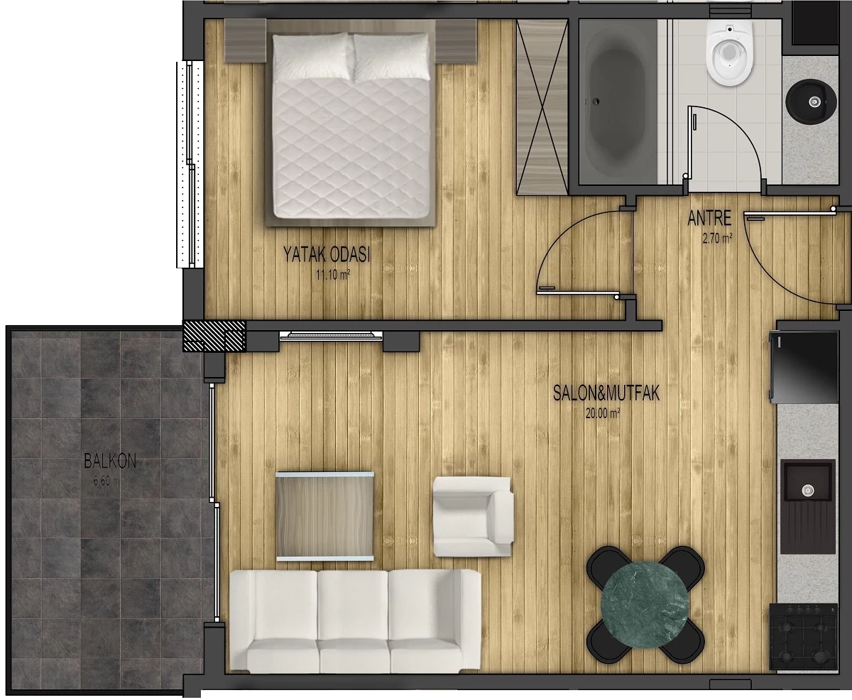 Alanya shahrida kvartira sotiladi. Maydoni, m: 65, xonalar: 1+1, narxi: 178 000 evro. (ID 553)