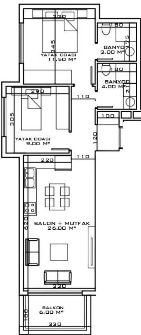 Kepez shahrida kvartira sotiladi. Maydoni, m: 44, xo...