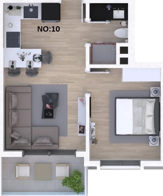 Gazipasha shahrida kvartira sotiladi. Maydoni, m: 48, xonalar: 1+1, narxi: 115 000 evro. (ID 577)