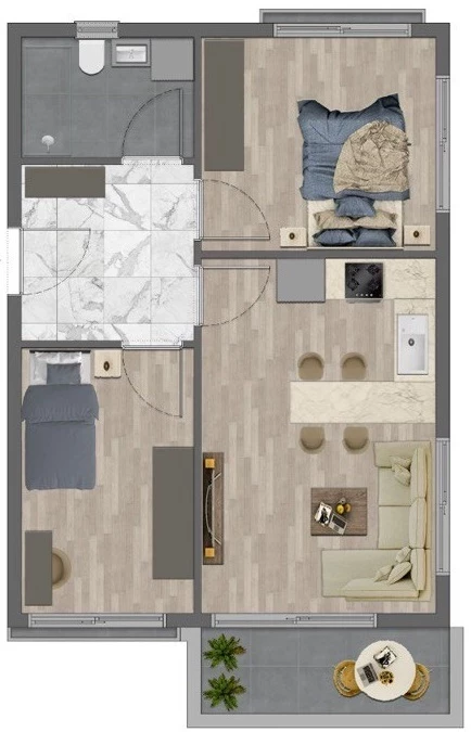 Xurmo shahrida kvartira sotiladi. Maydoni, m: 70, xonalar: 2+1, narxi: 164 150 evro. (ID 83)