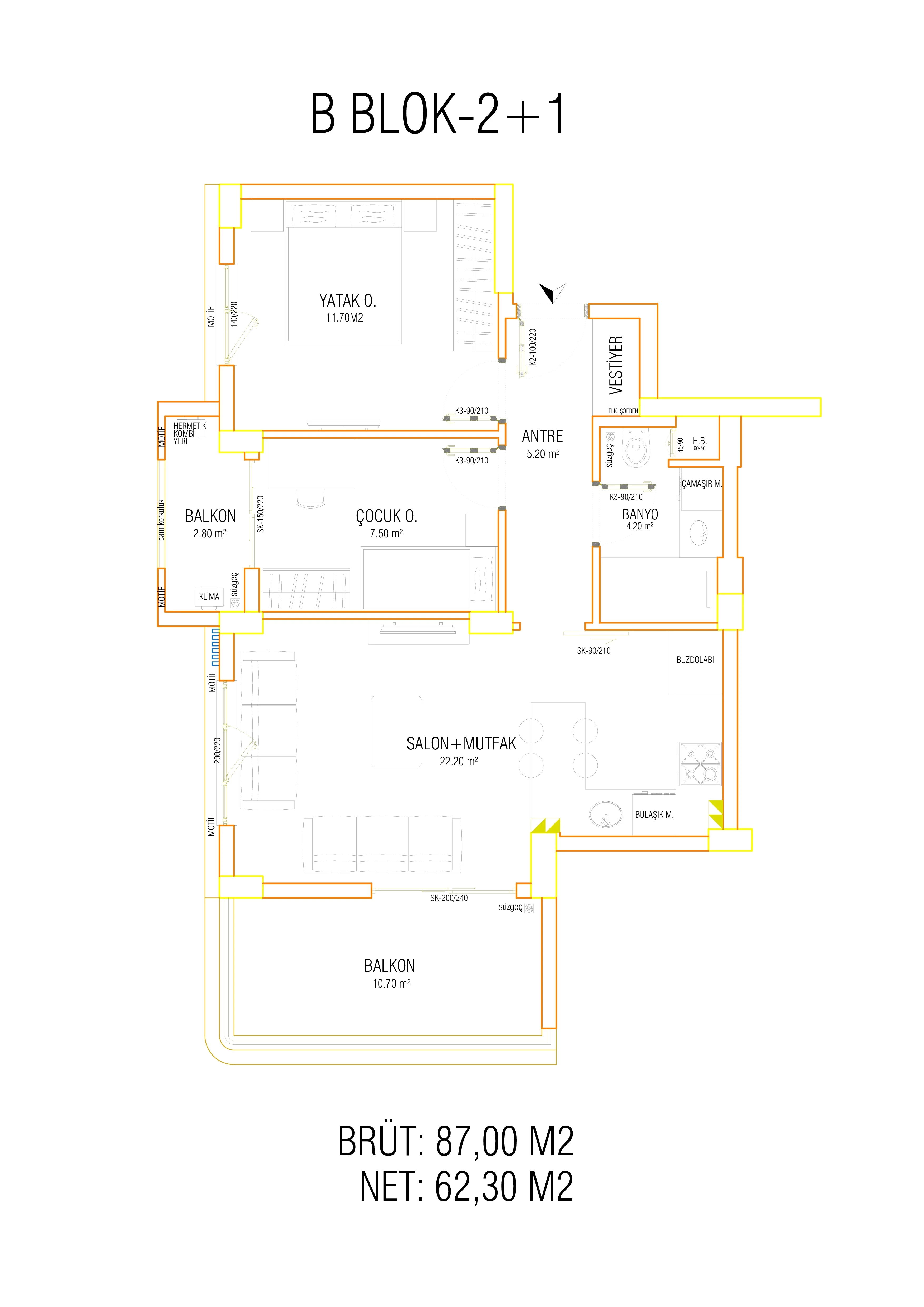 Aksu shahrida kvartira sotiladi. Maydoni, m: 87, xonalar: 2+1, narxi: 220 000 evro. (ID 134)