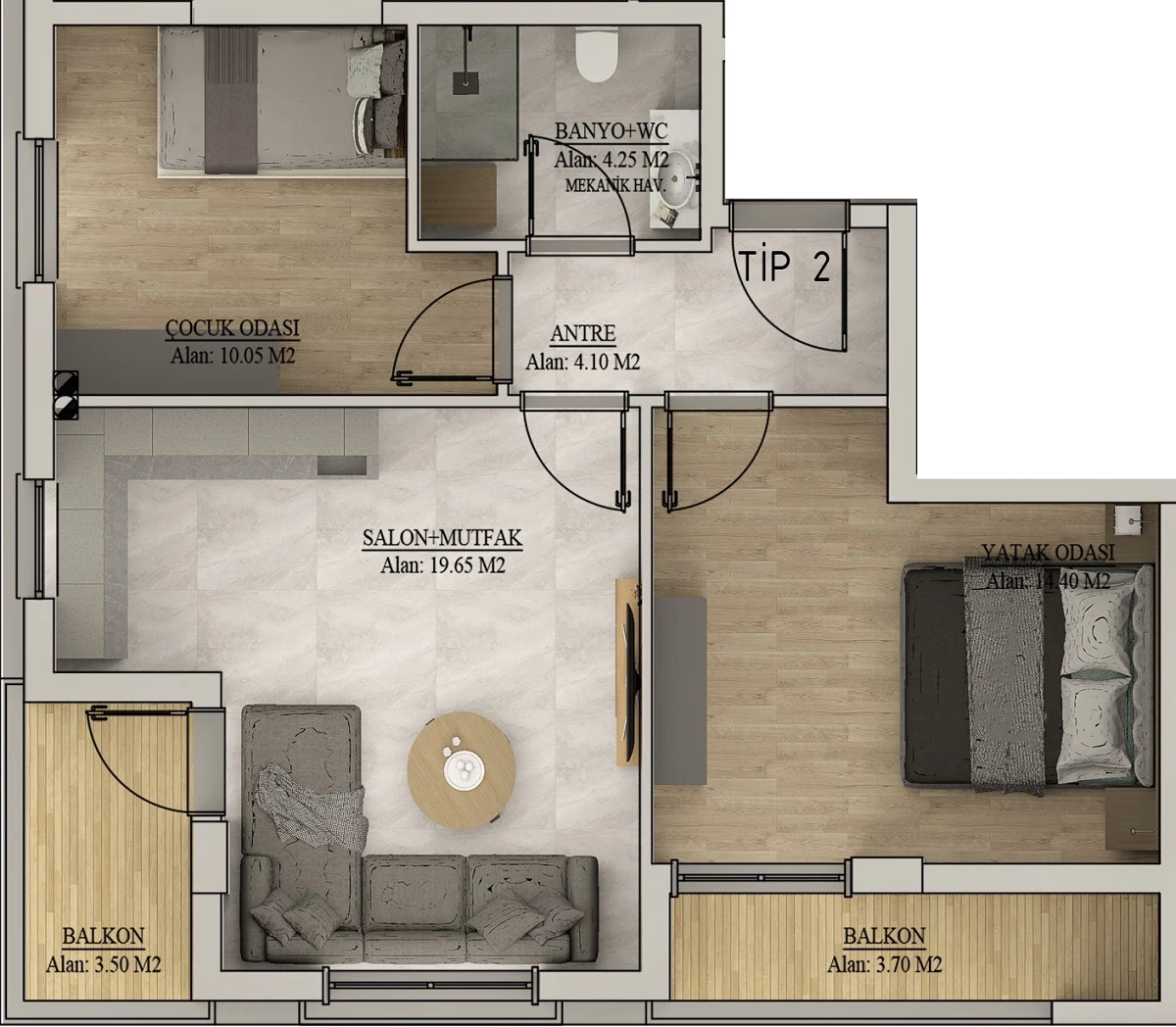 Serik shahrida kvartira sotiladi. Maydoni, m: 71, xonalar: 2+1, narxi: 162 000 evro. (ID 104)