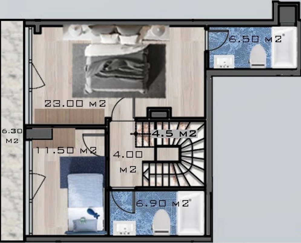 Konyaaltlar shahrida kvartira sotiladi. Maydoni, m: 133, xonalar: 2+1 duplex, narxi: 386 000 evro. (ID 411)