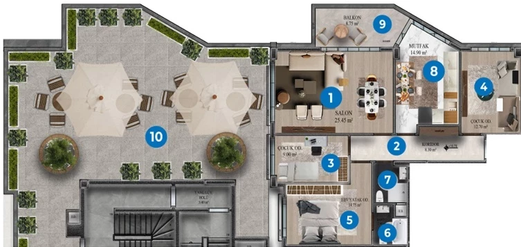 Kepez shahrida kvartira sotiladi. Maydoni, m: 135, xonalar: 3+1, narxi: 878 000 evro. (ID 425)