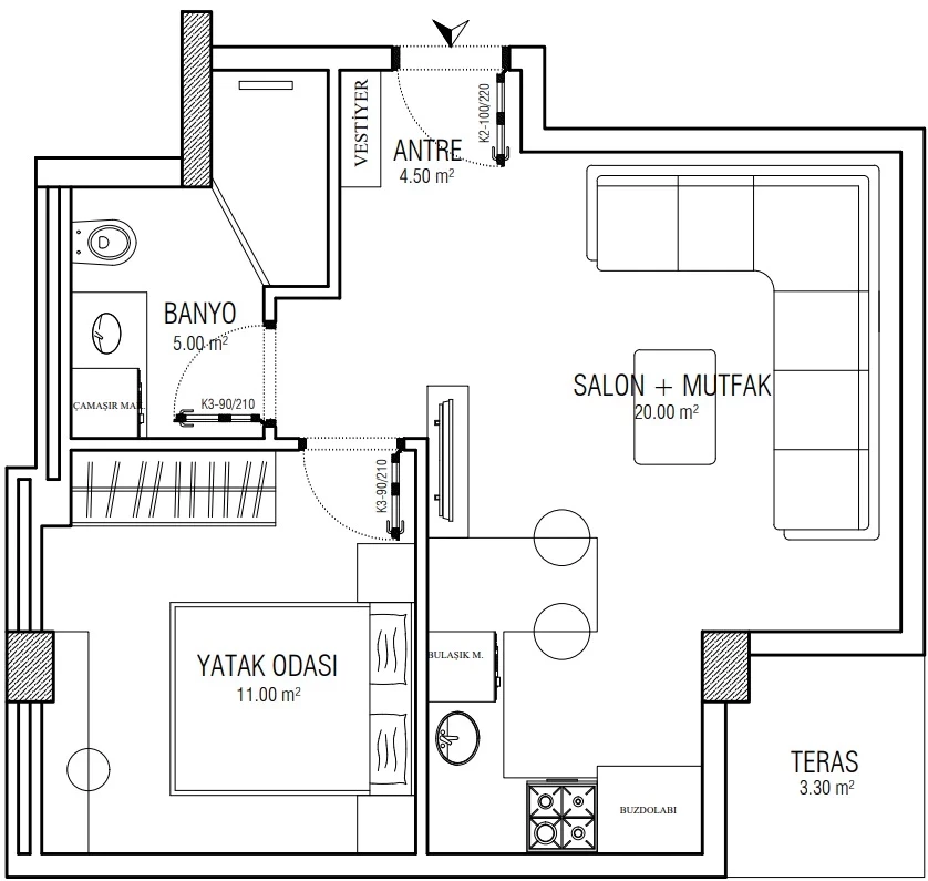 Muratpasha shahrida kvartira sotiladi. Maydoni, m: 57, xonalar: 1+1, narxi: 410 000 evro. (ID 433)