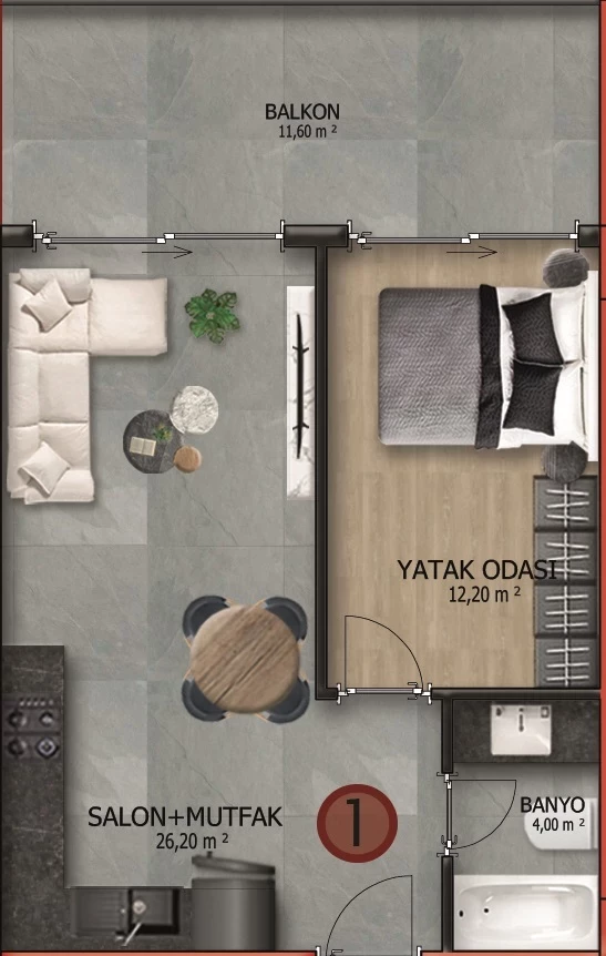 Yotoq xonasi: 1