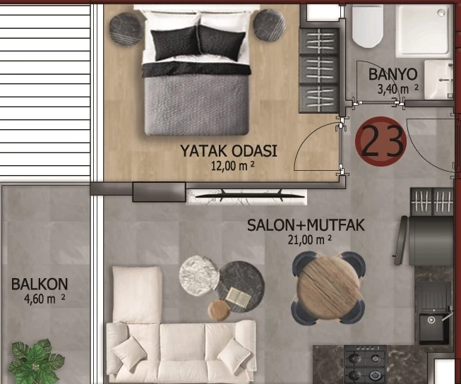 Alanya shahrida kvartira sotiladi. Maydoni, m: 41, xonalar: 1+1, narxi: 200 500 evro. (ID 458)