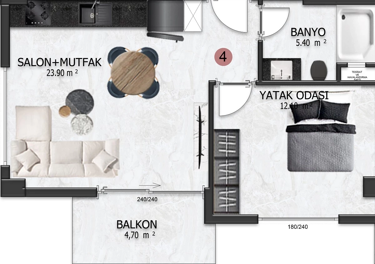Alanya shahrida kvartira sotiladi. Maydoni, m: 58, xonalar: 1+1, narxi: 167 000 evro. (ID 461)
