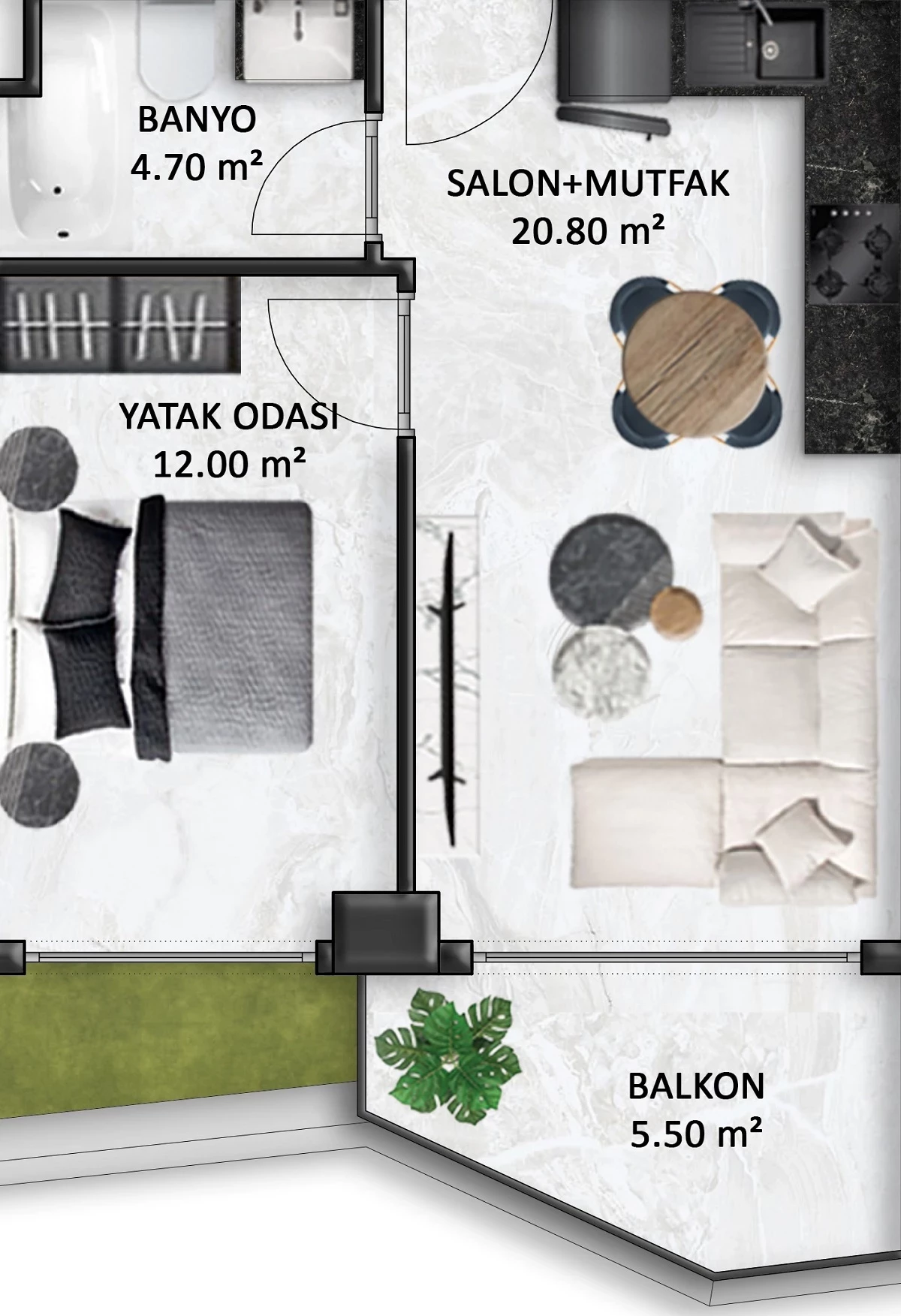 Alanya shahrida kvartira sotiladi. Maydoni, m: 43, xonalar: 1+1, narxi: 103 500 evro. (ID 465)