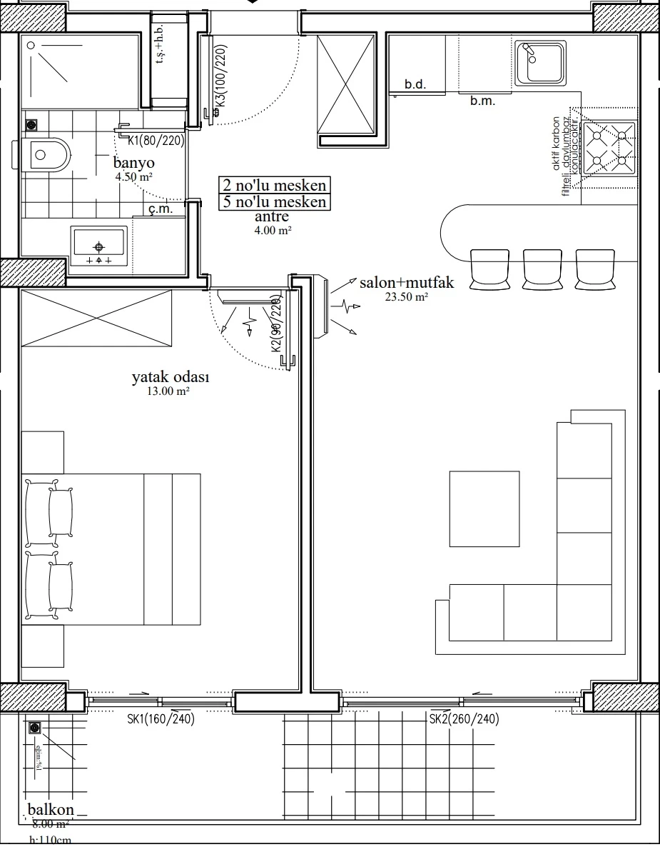 Alanya shahrida kvartira sotiladi. Maydoni, m: 57, xonalar: 1+1, narxi: 90 000 evro. (ID 466)